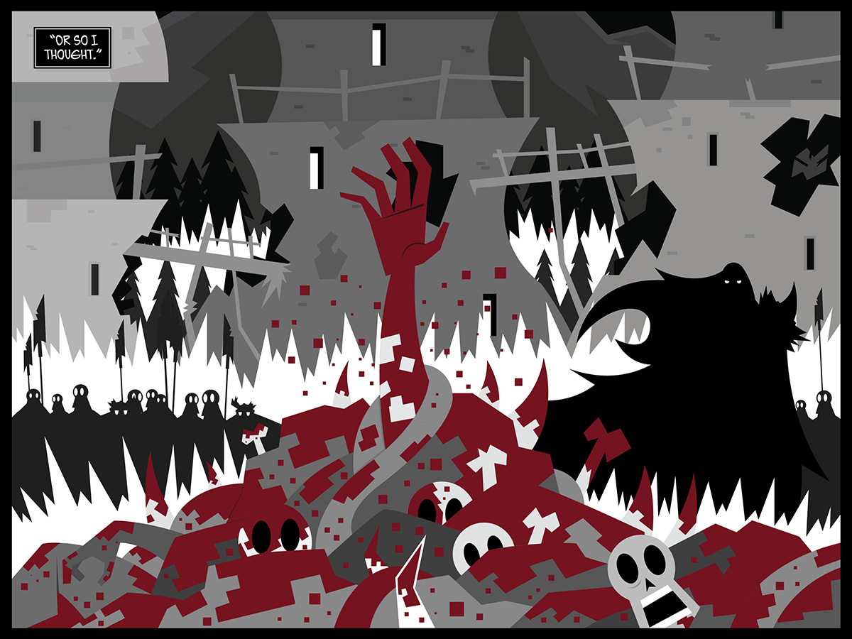 I didn’t know what we were going to get out of this page. Maliya isn’t a simple zombie…she has returned from the dead. A spell that restores life to a body that was reduced to ash has…special requirements. As far as I was concerned, Will was best suited to decide what those requirements were. The result is one of my favorite pages of the entire run of the comic.