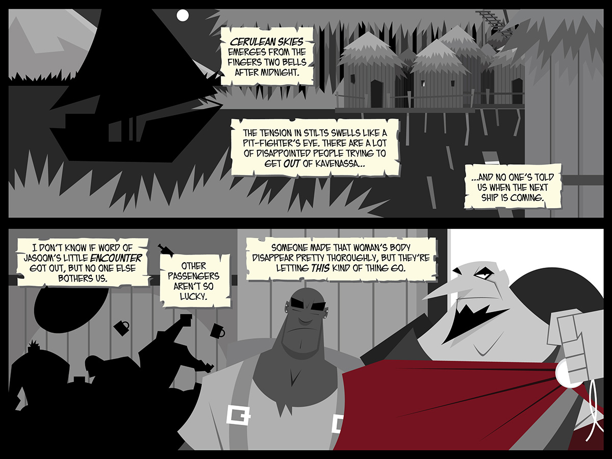 Hunter Black Page 1115 – The Next Ship Is Coming ⇦ Hunter Black Page 1114 – Keep Your Head Hunter Black Page 1116 – Fork Over Five Hundred ⇨ Facebook Comments Tagged Hunter Black, Jasoom Badrali, Stilts, Tilios Da..