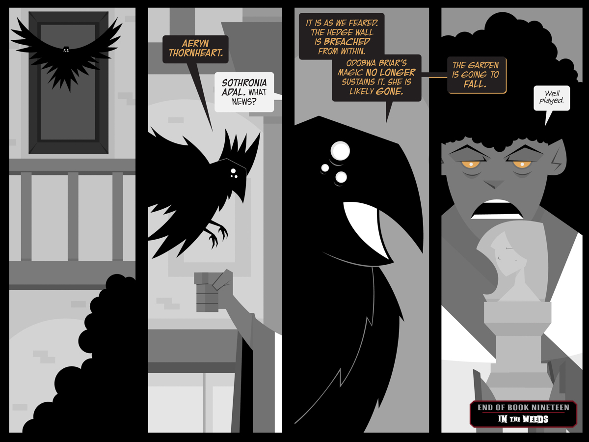 Of COURSE I wonder if Will was inspired by the Three-Eyed Raven from Game of Thrones for this page. I certainly didn’t tell him to do it. (Looks way cooler than anything I ever saw on that show, TBH.)