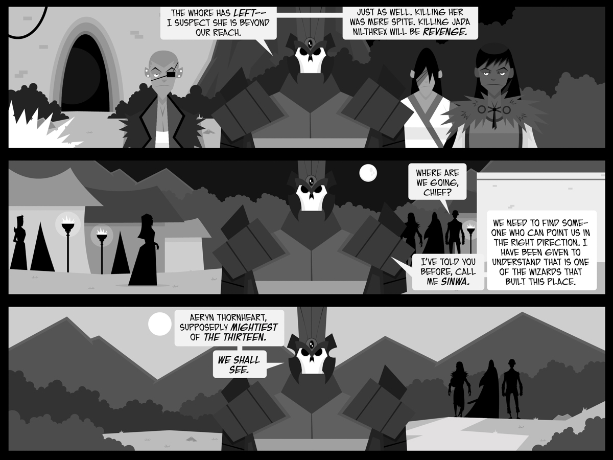 Kinda wish I’d scripted the dialogue on this page in caption boxes instead of speech balloons…looking at this page now, I find that having the dialogue out of synch with what we see on the page doesn’t work as well for me as a reader as it did for me as a writer.