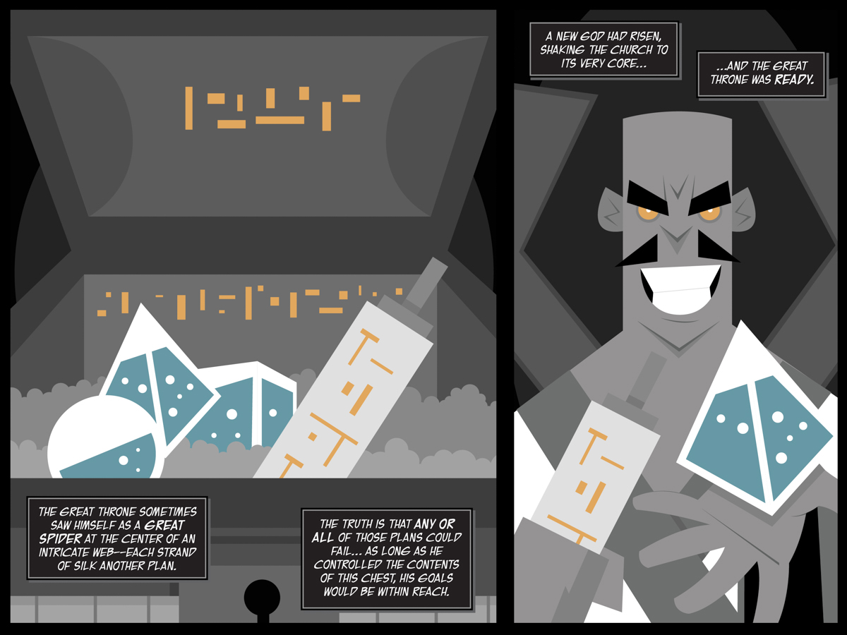 Hunter Black Page 1646 – A Great Spider ⇦ Hunter Black Page 1645 – Before Hunter Black Hunter Black Page 1647 – The Human Divine ⇨ There are not many things in the world I love more than weird new magic stuff in this comic. Facebook Comments Tagged Hoc Zhai, The Great Throne, The Mastermind, The Palace of Pearl, The Quadressence, Weyland's Bay.