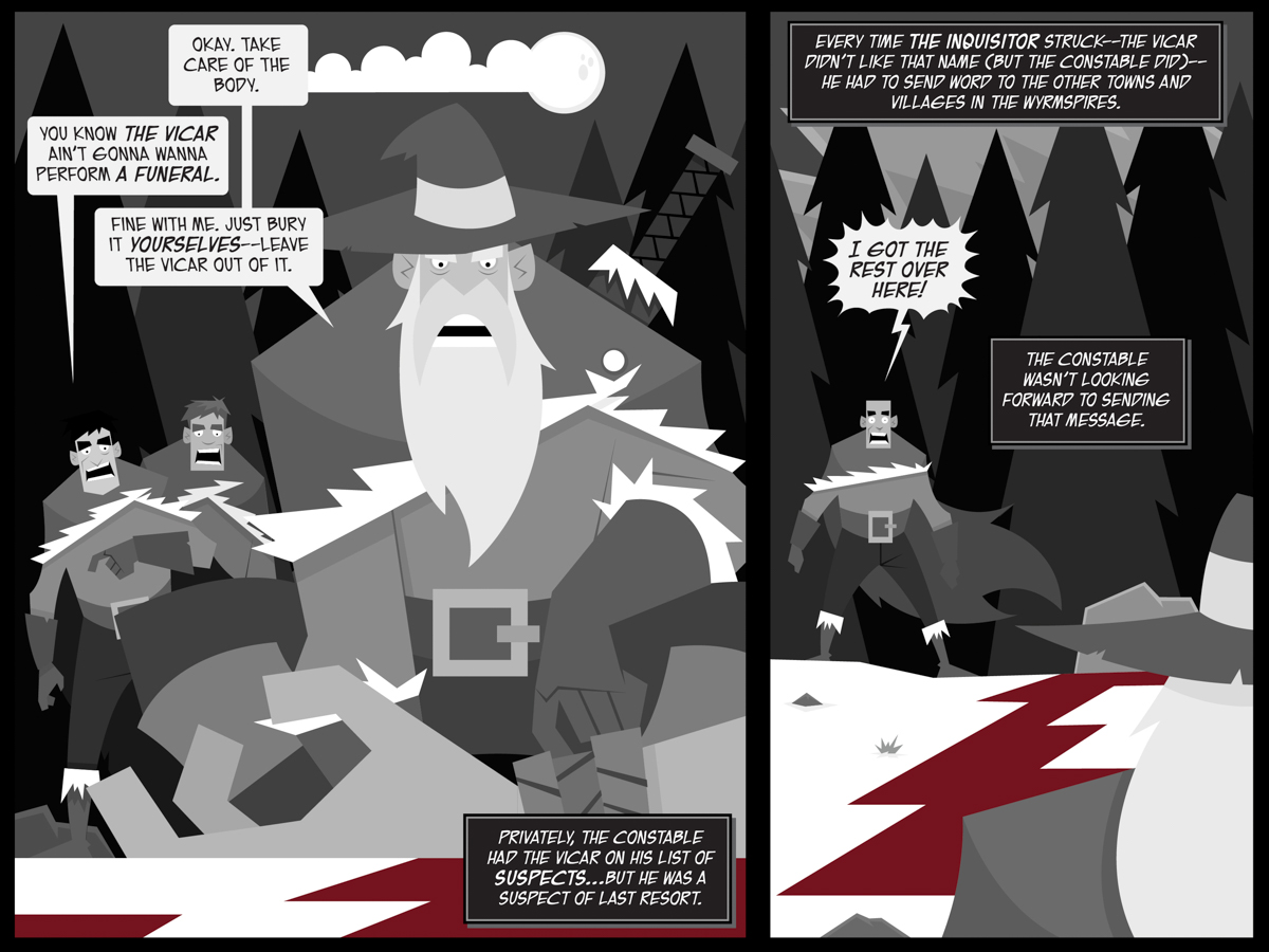I described the constable something like, “an old Grizzly Adams.” Will added the Gandalf hat all on his own.