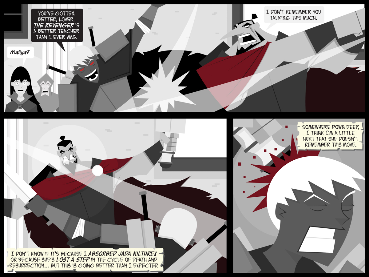 Seriously, do you guys remember when Hunter hit someone in the head with the pommel of a sword? Hint: It wasn’t The Revenger. (I mean, you don’t have to guess, it’s right here.)