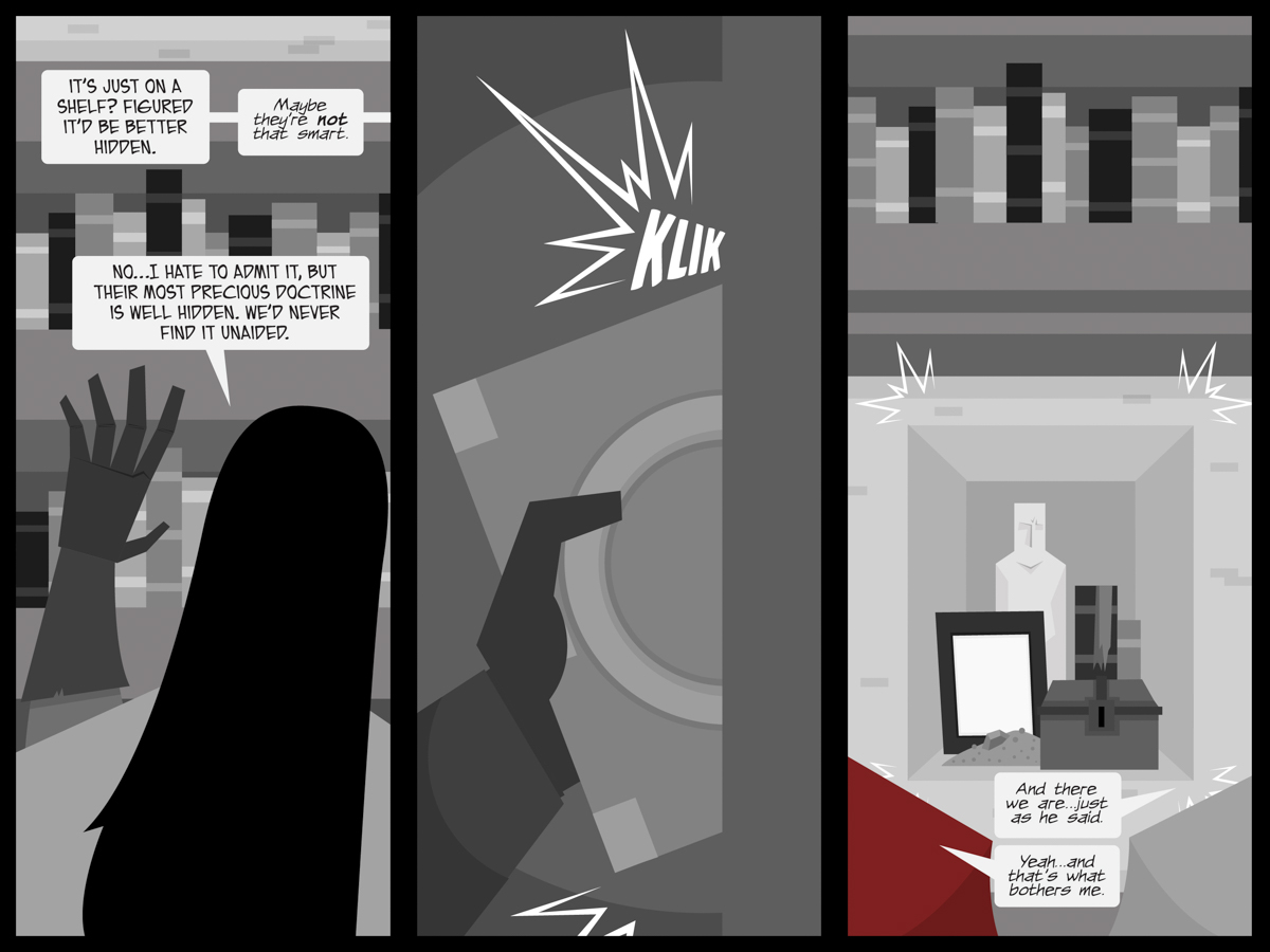I’ve been playing a lot of D&D lately, so secret doors and hidden treasure troves have been much on my mind. Shoot, I’ve been writing adventures lately! I’m sure some of this page comes from that stuff.